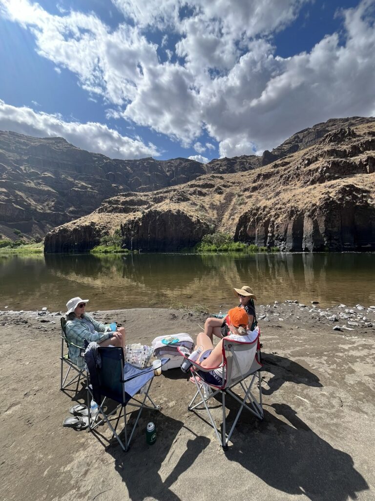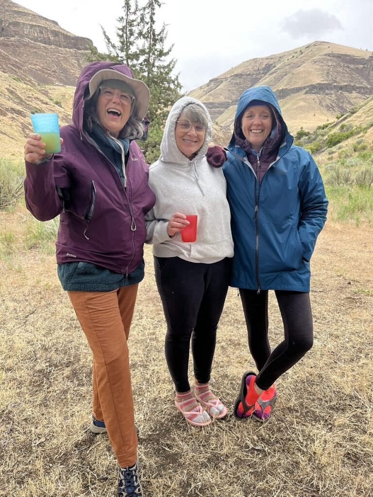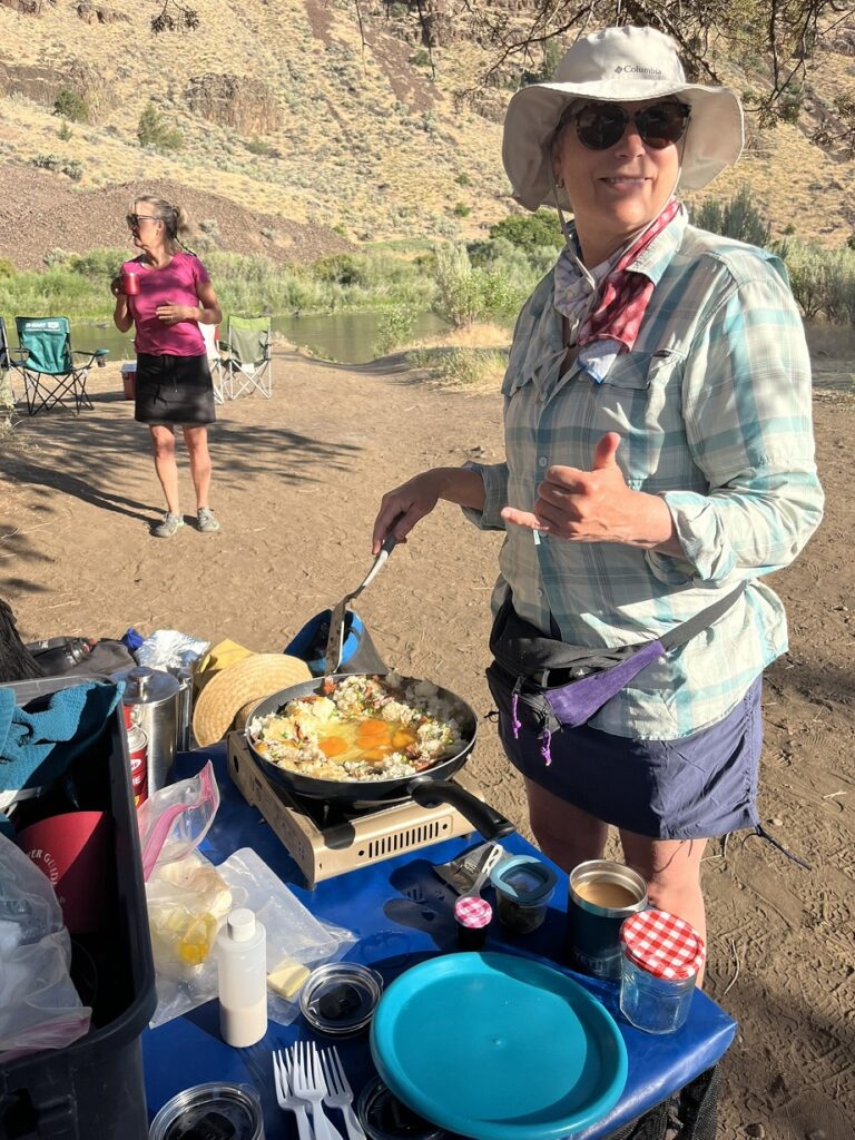 Cold and rainy first day. Camped early at new spot. Mai Tai to take away the cold, tent time games of farkel and not woke timeline. Great dinners by Wendy and Angela. Wendy has some bird issues to work through. 20 questions marshmallow. Nice sunny day on day 3. Angela's catches fish for dinner. Beautiful Green Canopy of trees completely burnt